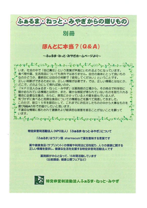 ・「ふぁるま・ねっと・みやぎからの贈りもの」別冊 ほんとに本当?(Q&A)